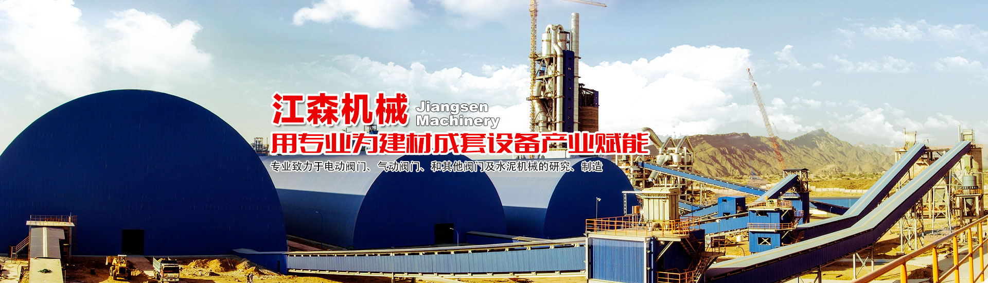 江森機械專業致力于電動閥門、氣動閥門、和其他閥門及水泥機械的研究、制造。主要產品有均化庫、空氣輸送斜槽、收塵器、NE斗式提升機、電動水泥蝶閥、電動百葉閥、重錘翻板閥等。產品廣泛用于水泥、港口、碼頭、火力發電、煉鋼和供暖、石油輸送、水處理等行業